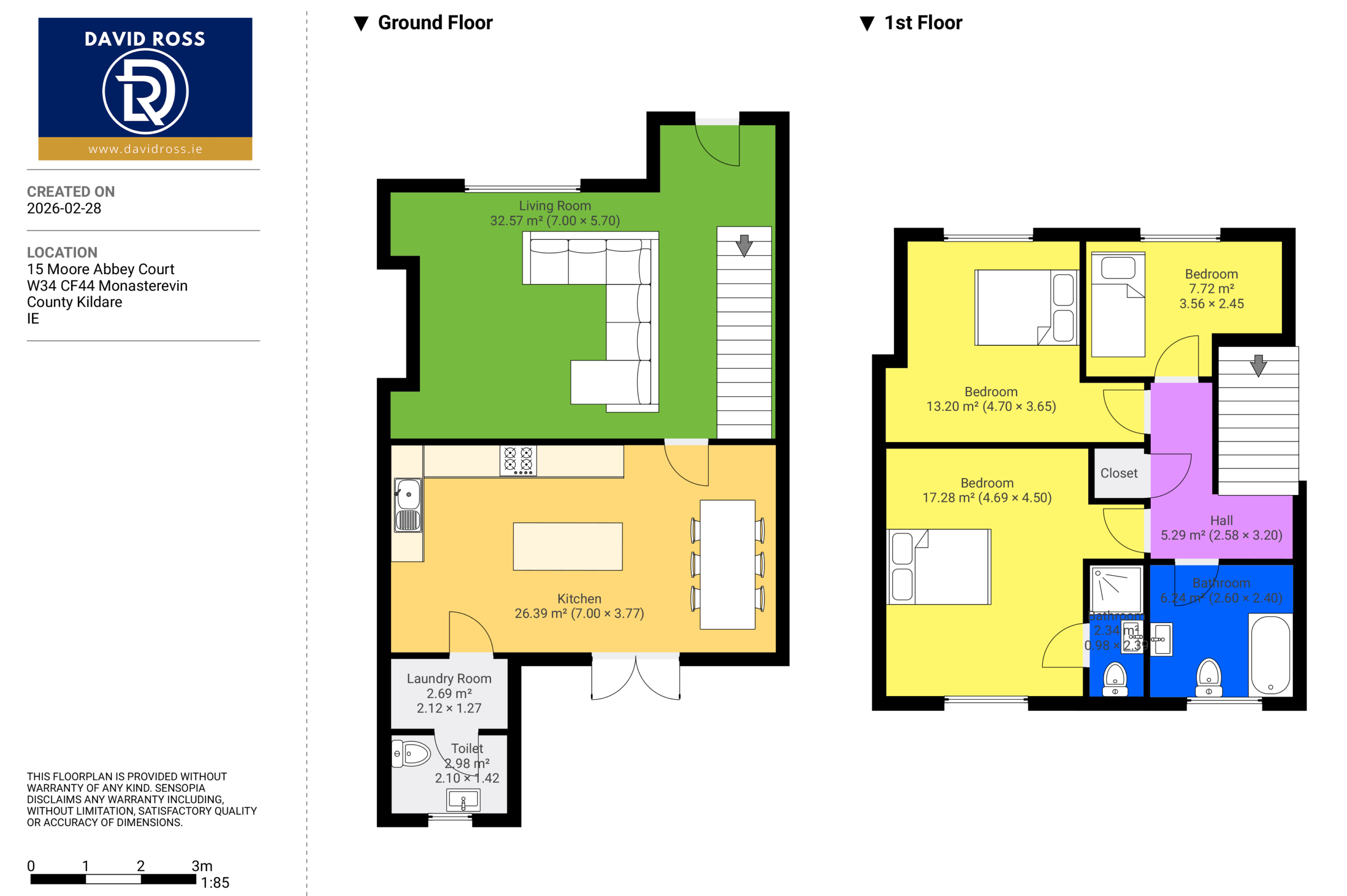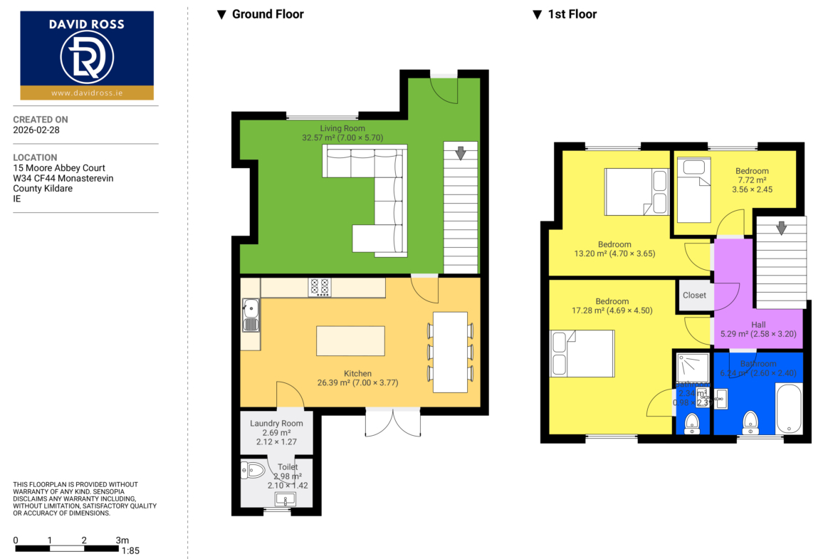 Ideally located in Moore Abbey Court, the property enjoys immediate access to the historic town of Monasterevin, renowned for its charming setting along the River Barrow and its excellent schools, shops, woodlands and leisure facilities. Kildare Village and the M7 motorway are just minutes away, with Dublin accessible in approximately 40 minutes.