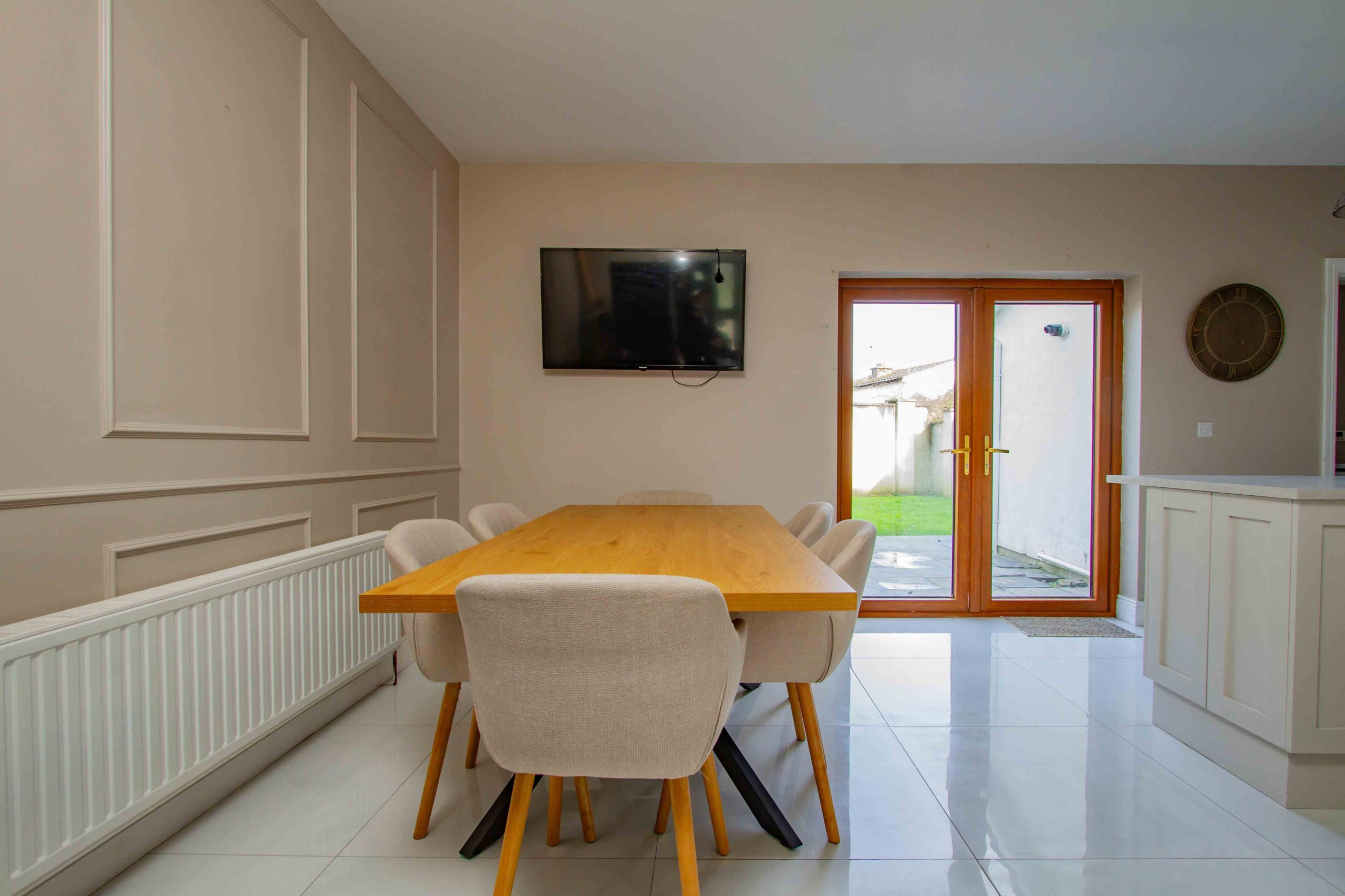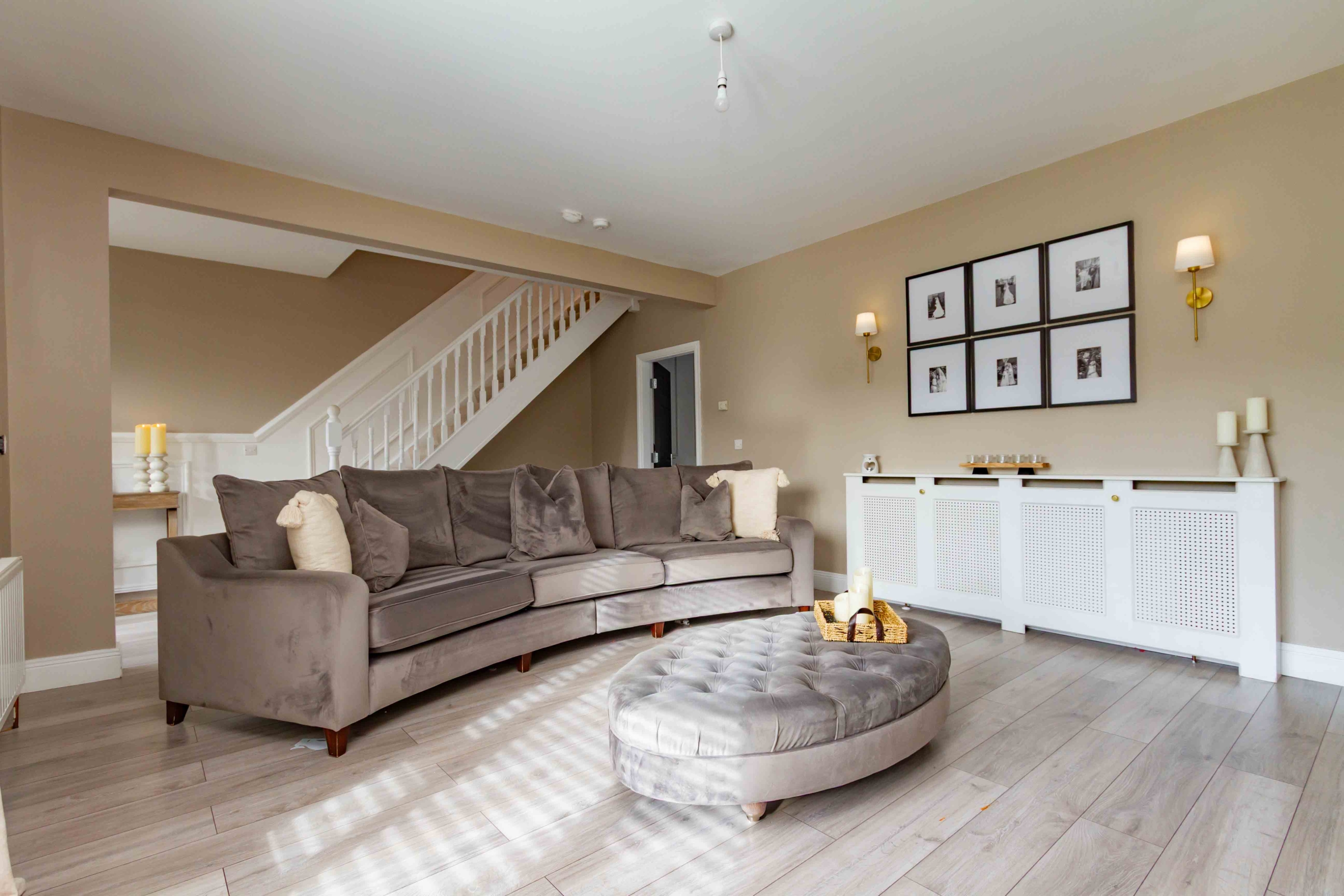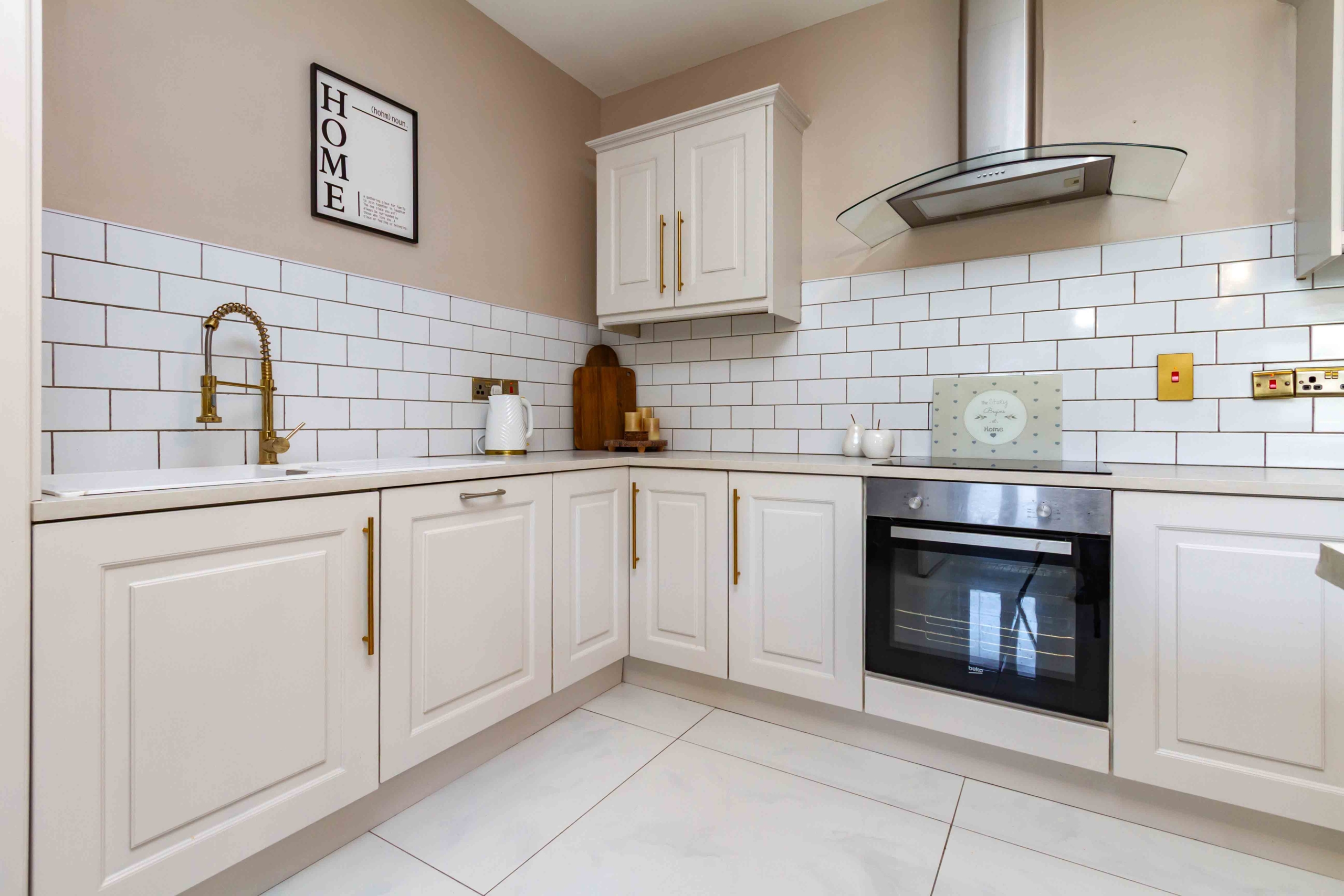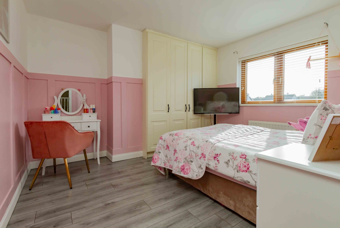 Presented in pristine, turnkey condition, this home has been finished to an impeccable standard throughout. The accommodation is both generous and beautifully presented with notable features throughout. A spacious living room to the front provides an elegant and welcoming retreat, while to the rear, a substantial sun-filled kitchen and dining area forms the true heart of the home. The stylish kitchen provides a social layout for modern day living thanks to the addition of an island. Tastefully decorated, the classic subway tiles and panelling details exude charm and character in the heart of the home while patio doors frame the views of the garden.