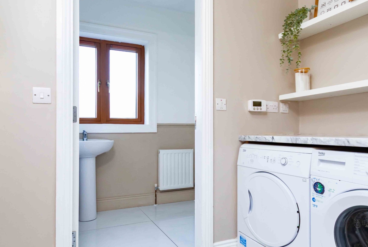 The kitchen is further enhanced by a separate utility room, and convenient downstairs toilet completing the ground floor.