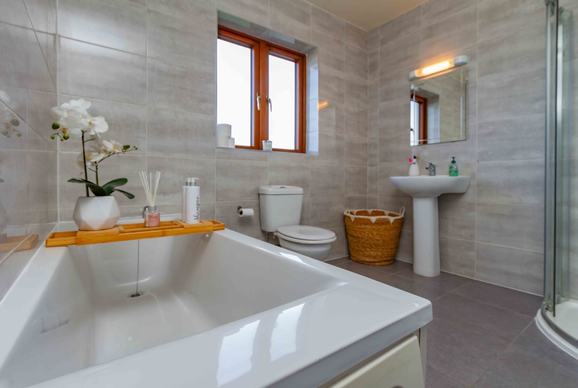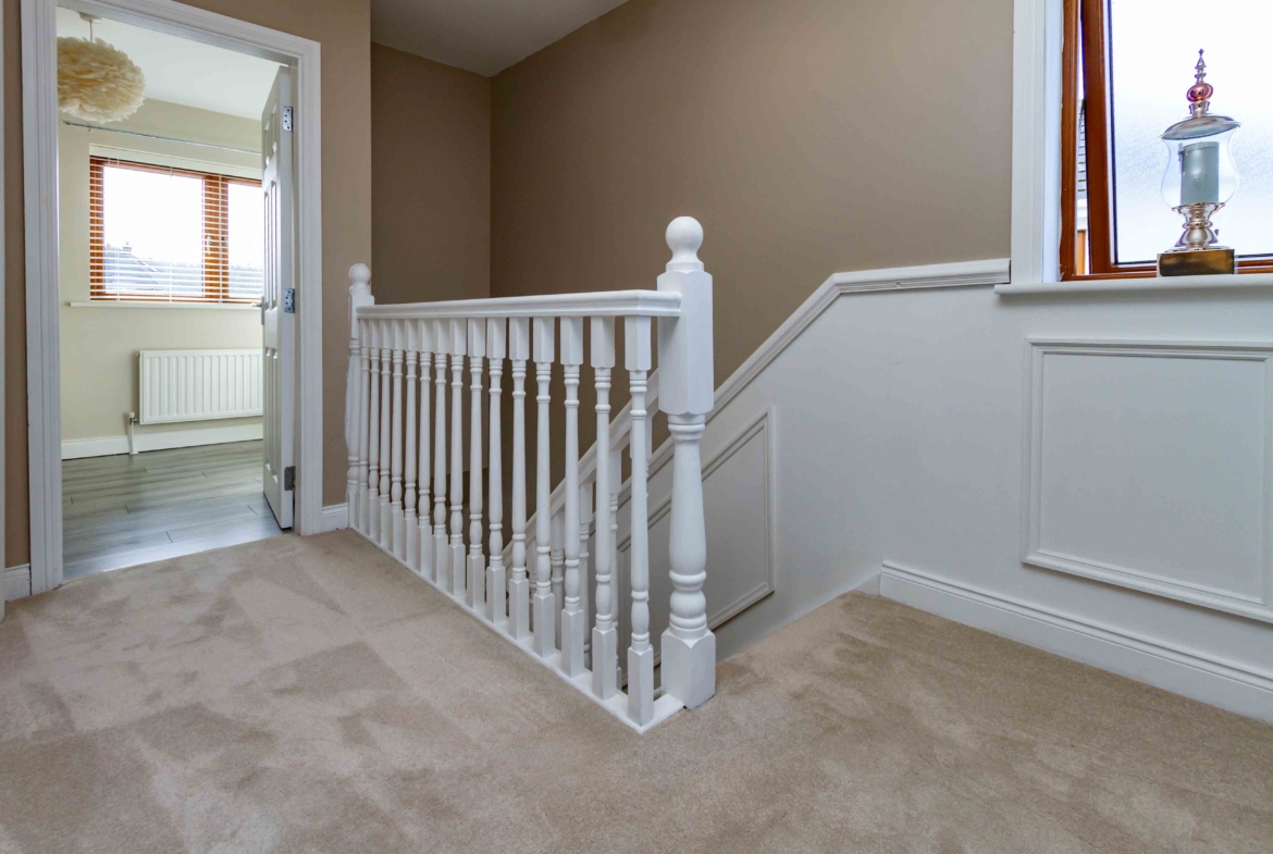 Upstairs, a feature staircase with window creates a bright and welcoming landing. There are three superb double bedrooms, each finished to an impeccable standard, with the principal bedroom benefitting from a generous ensuite. The family bathroom completes the first floor and provides a perfect oasis for relaxation.