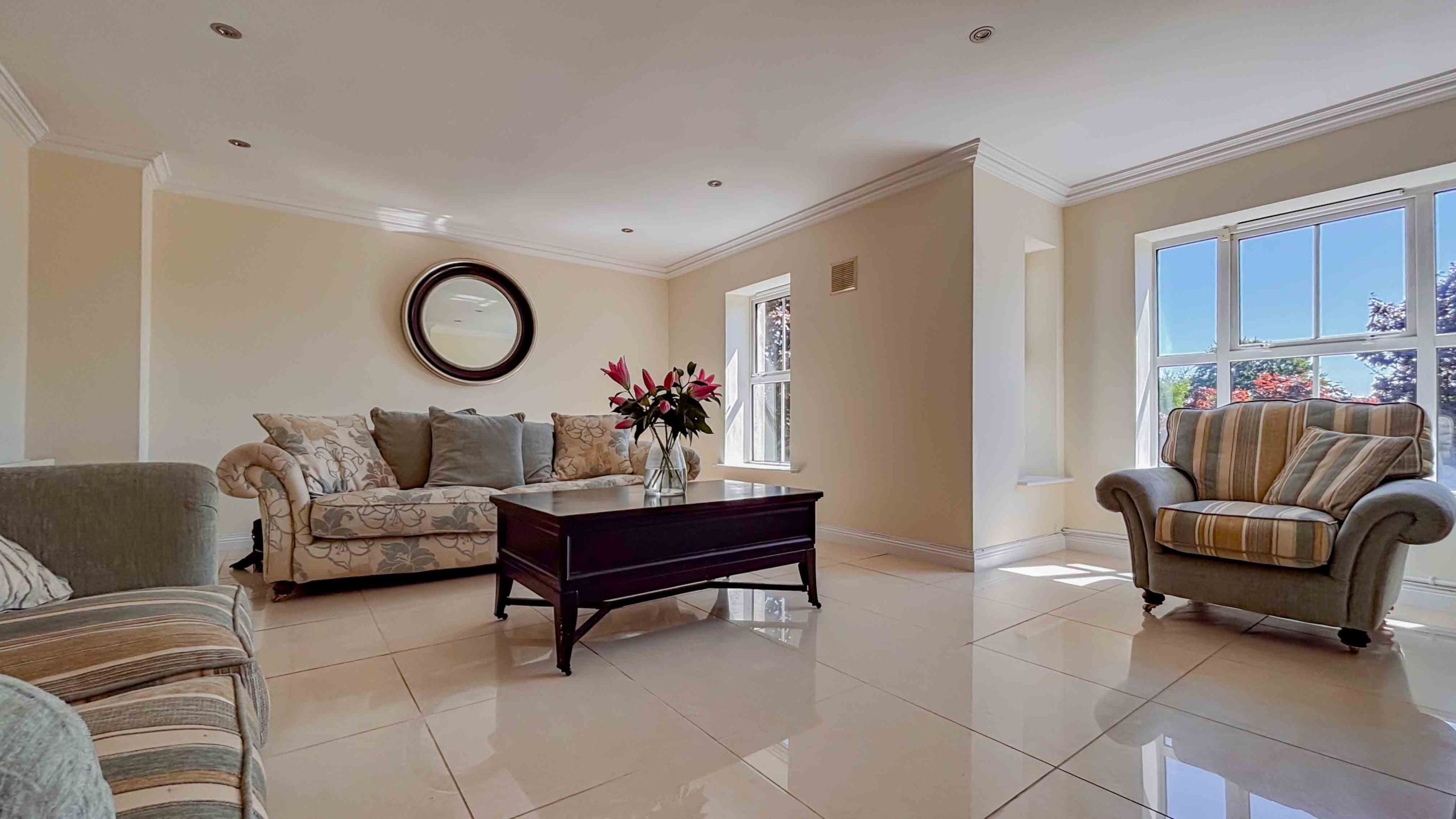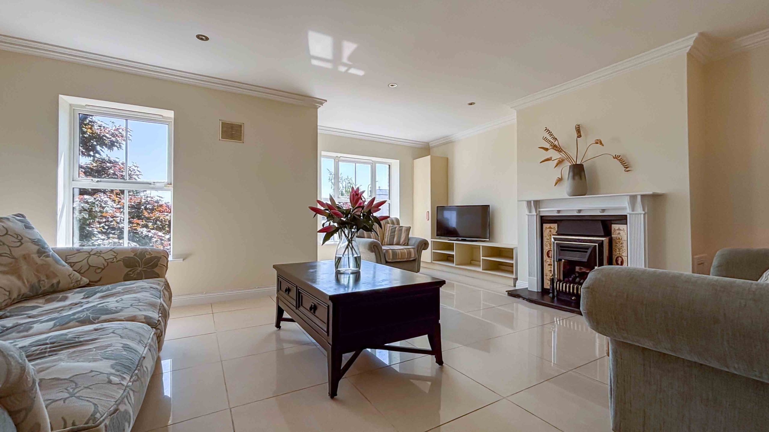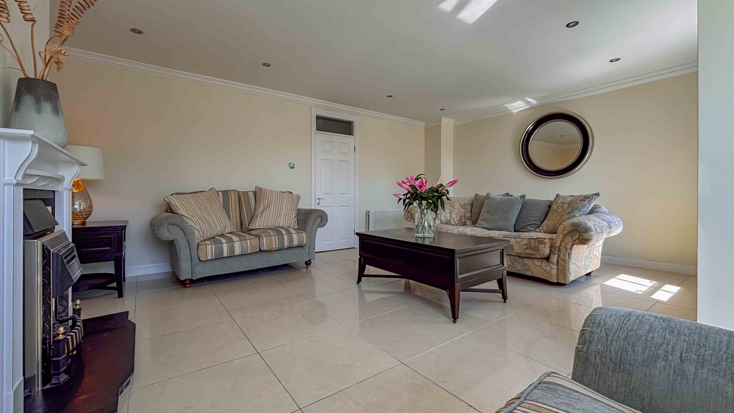 Upon entering No: 25 you will immediately see that this home has been not only modernised but well kept by the current owners. The hallway offers some convenient storage spots and you will also notice the stylish cream tiles that run from the kitchen through the hallway and into the spacious living room.