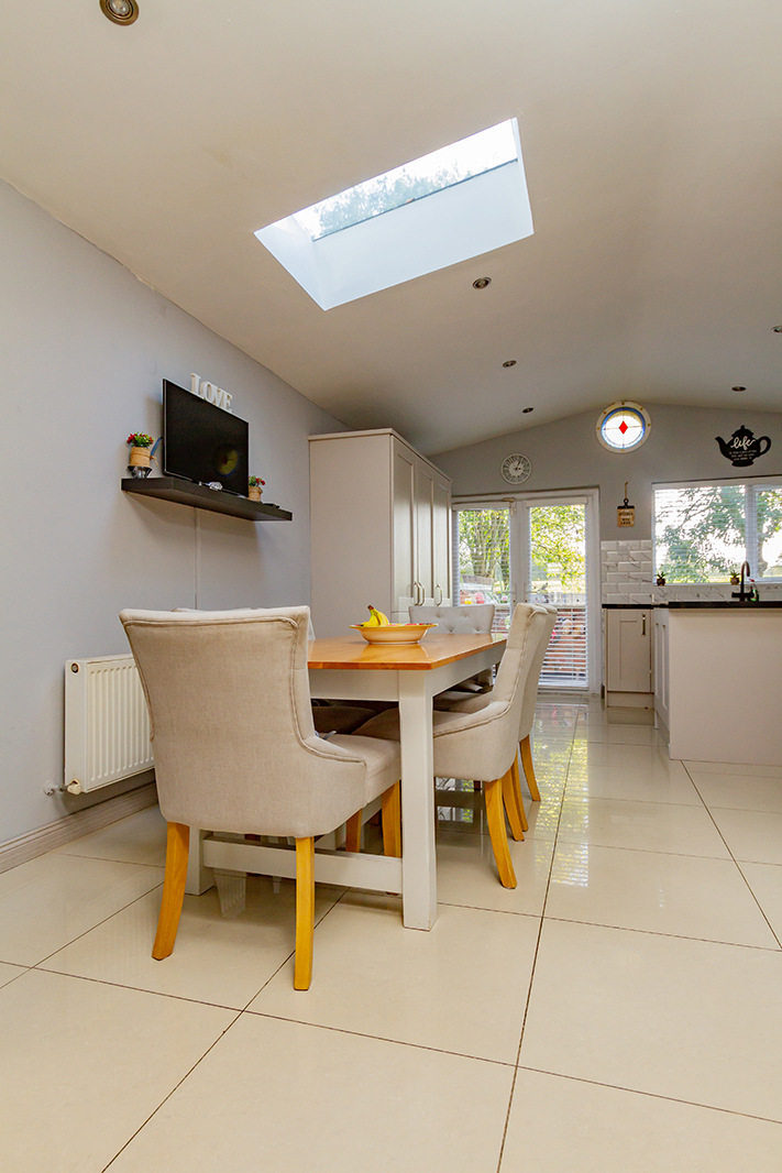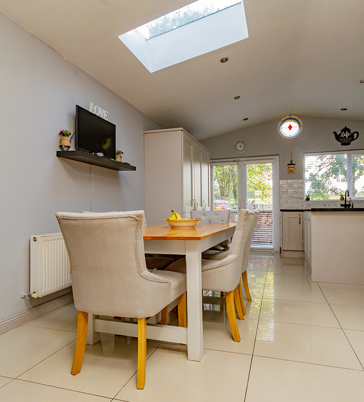 This family home has been renovated and extended to the highest of standards by its proud current owners to offer any discerning purchaser the opportunity to purchase one of the finest properties to come to the market for sale in Drimnagh recently. The property not only is a joy to behold internally but also provides a private low maintenance landscaped garden space and sought after southerly aspect provides a delightfully comfortable environment all year round. The home radiates warmth with the extensive use of glass to take full advantage of the sun.