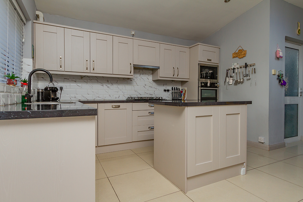 Entertaining at home is always a pleasure with this gourmet kitchen, plenty of preparation space on the bench tops, offering integrated appliances and an island, as well as a generous sitting area with feature fireplace. The home also benefits from a downstairs bathroom with both a