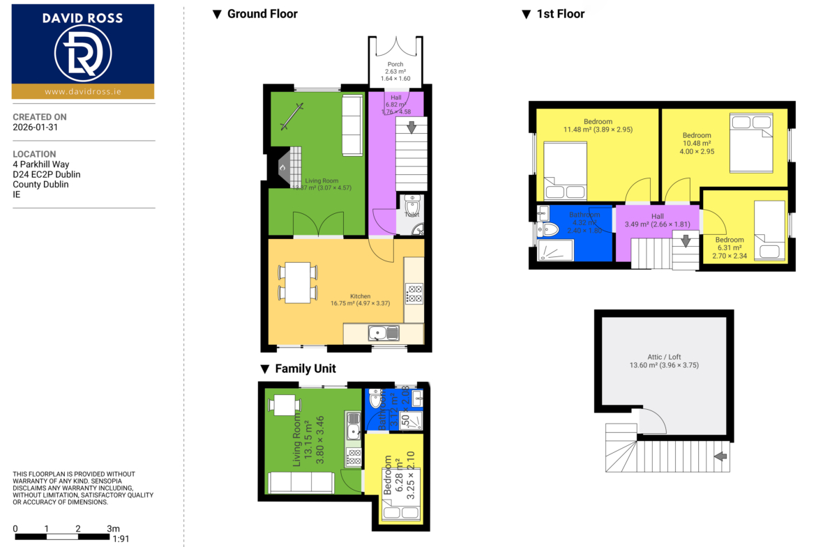 Upstairs there are 3 large bedrooms being two double and one single as well as a fully tiled family bathroom.
