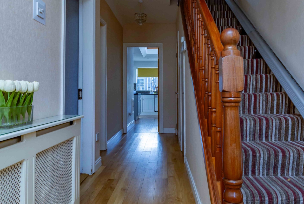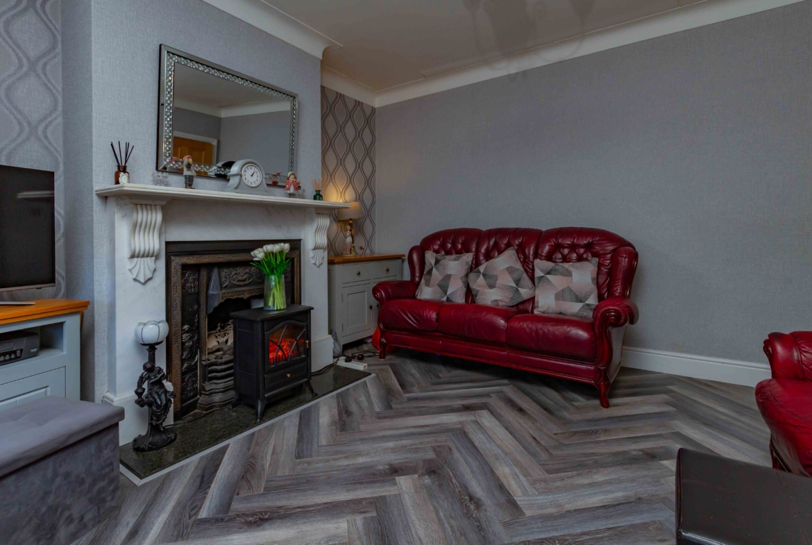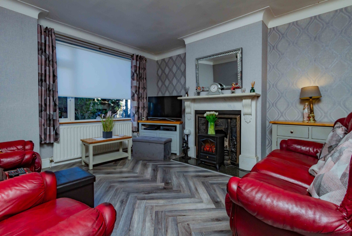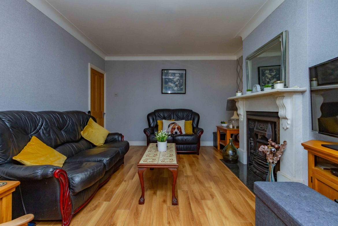Upon entering this magnificent property you are met with a warm, welcoming hallway. Just off this to the left is a cosy front facing reception room fitted with a beautiful feature fireplace. Passing this you will find a second living room also with a feature fireplace, which opens up into an extended large kitchen/dining area with a fully fitted and modern kitchen. A layout like this would be very ideal for entertaining family and friends. There is also a convenient toilet situated just at the end of the hall.