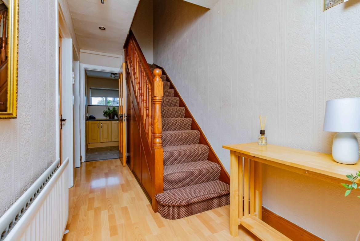 Upstairs you will find 2 double bedrooms one with fitted wardrobes and a good size single bedroom, there is also a fully tiled family bathroom.